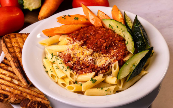 Pasta con salsa roja, carne, cerdo y res, reconfortante, artesanal y ligera.